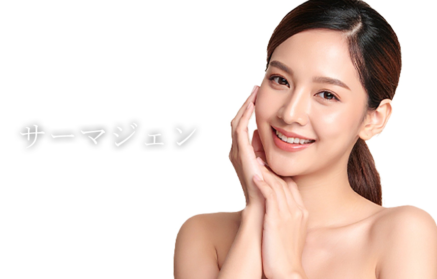 サーマジェンは、ラジオ波(RF高周波)の熱エネルギーを皮膚の真皮層から皮下脂肪の上層部に照射し、リフトアップや部分的な痩身効果をもたらす最新のたるみ治療です。
